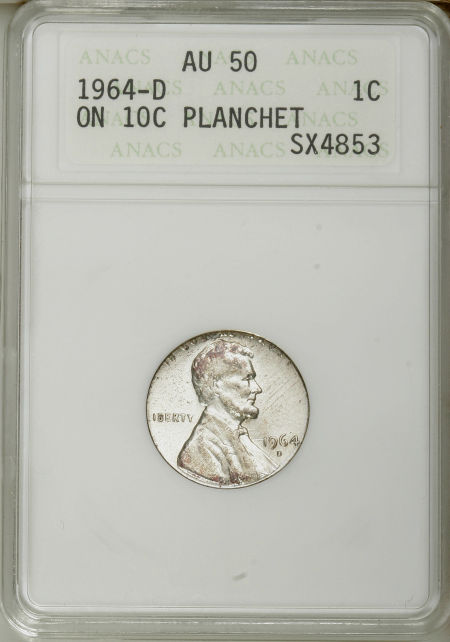1964-D 1C Lincoln Cent--On a Dime Planchet--AU50 ANACS