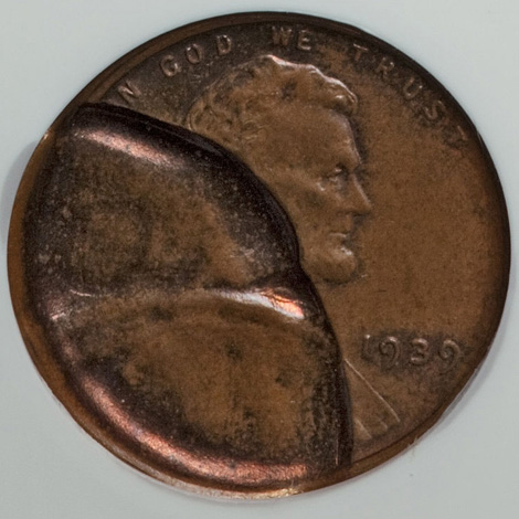 1939 Lincoln Cent--Obverse Brockage--MS64 Brown NGC
