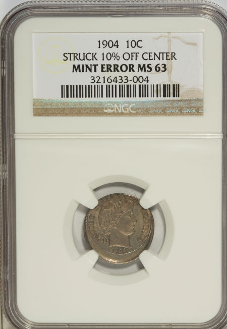 1904 Barber Dime--Struck 10% Off Center--MS63 NGC