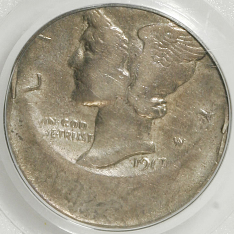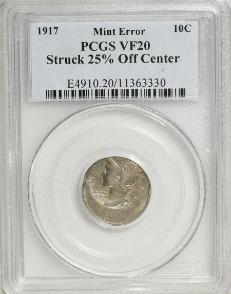 1917 Mercury Dime--Struck 25% Off-Center--VF20 PCGS