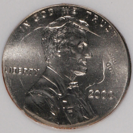 2000-P 5C Jefferson Nickel--Struck on a 1978 Lincoln Cent--MS64 Red and Brown ANACS