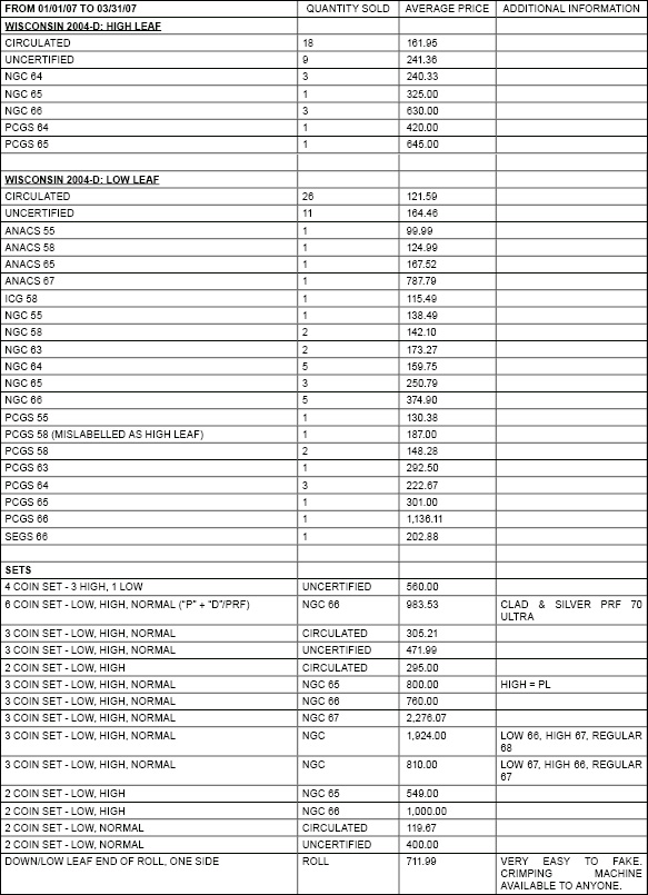 AN IMPORTANT OBSERVATION ABOUT THE BUFFALO 5c “SPEARED BISON” & THE “WISCONSIN” 25c EXTRA LEAVESS ARE EBAY ITEMS ONLY. NO DEALERS I SPOKE TO AT SHOWS OR LOCALLY SOLD ANY OF THESE ITEMS. NOR, WERE THERE ANY CALLS FOR THEM. SELLERS ONLY.