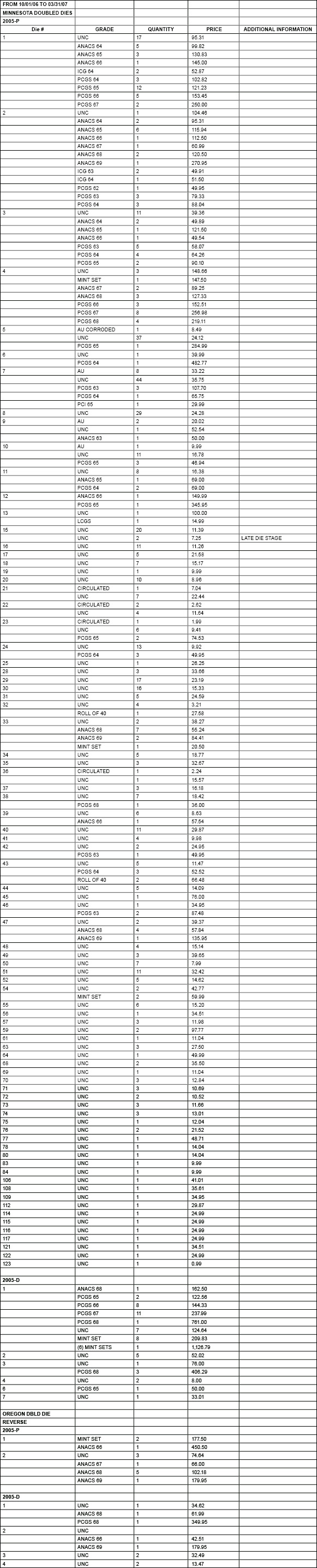 I did not compare the listed die number in the auction to the designated die number actually assigned. There were too many varieties to try and compare so I took the word of the seller. It was interesting to note many of these doubled dies were listed by the authenticators. Many of the coins listed did not sell. PCGS graded coins brought the highest prices.
