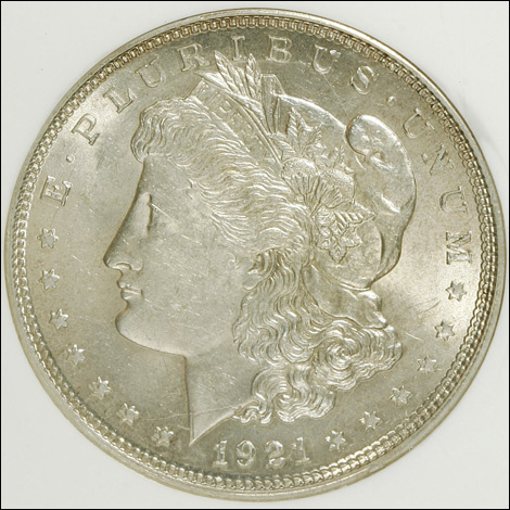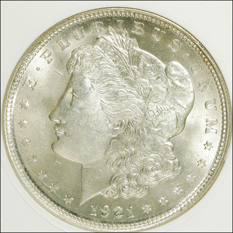 1921 $1 Morgan Dollar--Double Struck in Collar