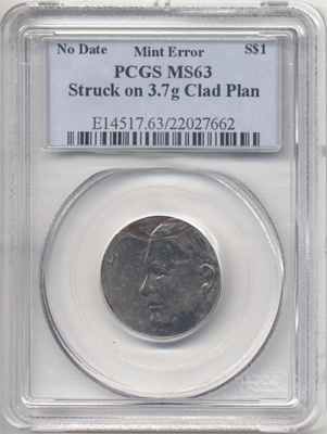 Ike Dollar--Struck on a 3.7g Clad Planchet