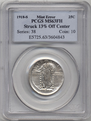 1918-S Standing Liberty Quarter--Struck 13% Off-Center