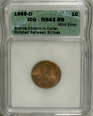 1989-D Lincoln Cent--Double Struck on Bronze Planchet