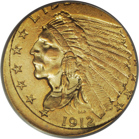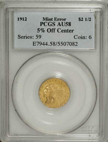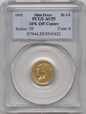 1912 $2½ Indian Gold--Struck 10% Off-Center