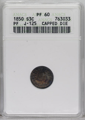 1850 P3CS Three Cent Silver, Judd-125 Original--Capped Die