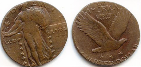 No Date Quarter Silver Struck on a Dime Planchet - indented Multi-error