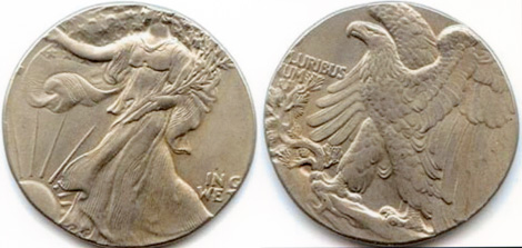 50¢ Walking Liberty Struck on a 5¢ Planchet