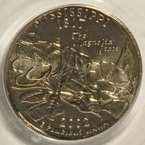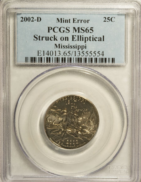 2002-D 25C Mississippi Quarter--Struck on Elliptical--MS65 PCGS