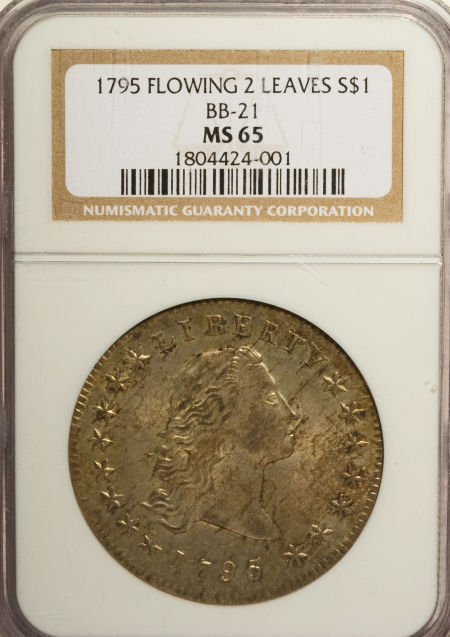 1795 $1 Flowing Hair, Two Leaves MS65 NGC