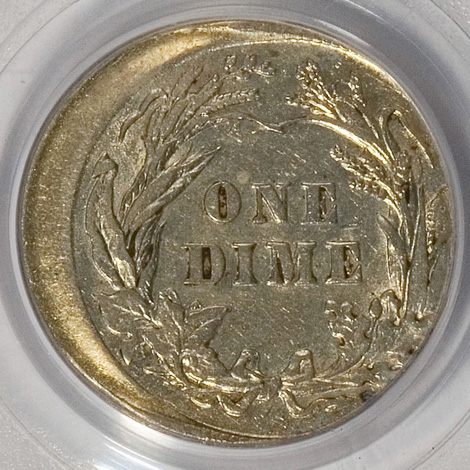 1901 10C Barber Dime--Struck 10% Off Center--AU53 PCGS