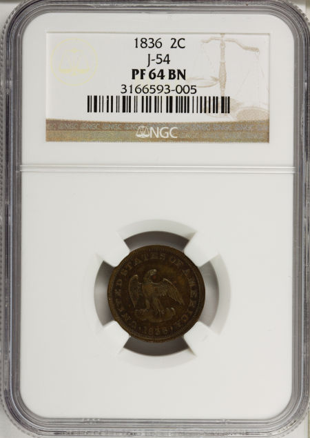 1836 P2C Two Cents, Judd-54, Pollock-57, Low R.6, PR64 Brown NGC