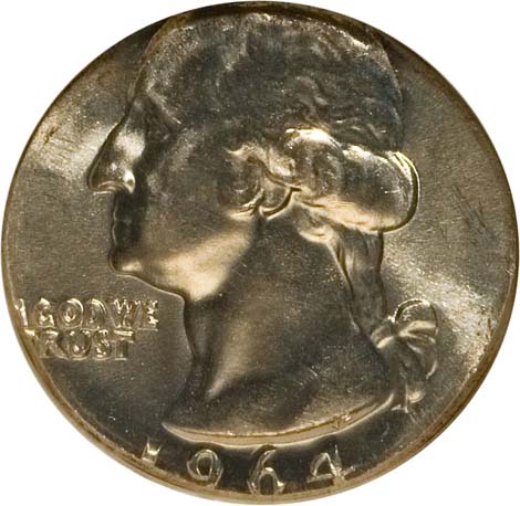 1964 25C Washington Quarter--25C Struck On a 10C Planchet 2.5 Grams--MS64 NGC