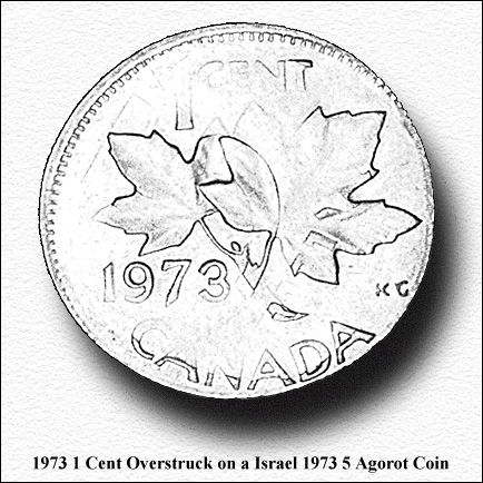 Canada has struck coins for Israel since 1973 and produced 16,300,000 Aluminum Bronze 5 Agorot in that year.