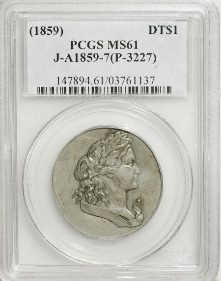 (1859) Silver Dollar, Judd-A1859-7, Pollock-3227, Low R.8, MS61 PCGS