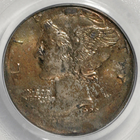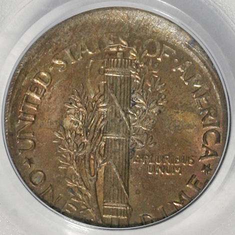 1928-S Mercury Dime--Struck 5% Off-Center--MS65 PCGS