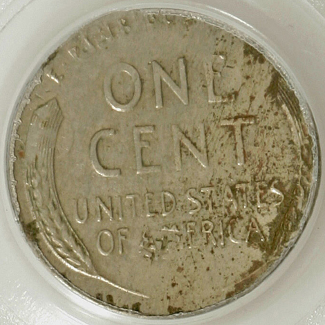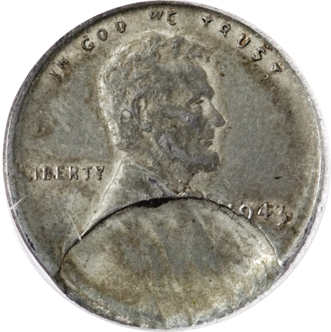 1943 Lincoln Cent--Double Struck in Collar, 25% Indent--AU58 PCGS