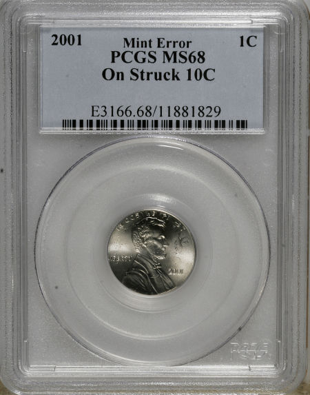 2001 Lincoln Cent--On a Struck Dime--MS68 PCGS