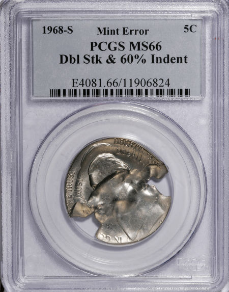 1968-S Jefferson Nickel--Double Struck and 60% Indent--MS66 PCGS