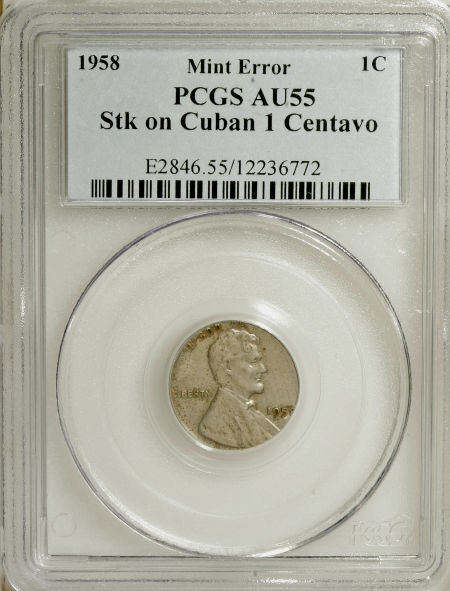1958 Lincoln Cent--Struck on a Cuban 1 Centavo Planchet--AU55 PCGS