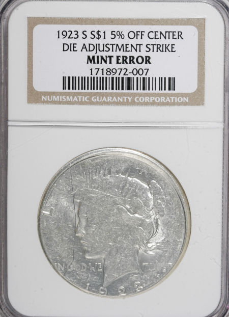 1923-S Peace Dollar--5% Off Center, Die Adjustment Strike--NGC