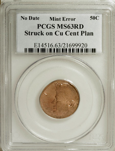 Undated Kennedy Half--Struck on a Copper Cent Planchet--MS63 Red PCGS