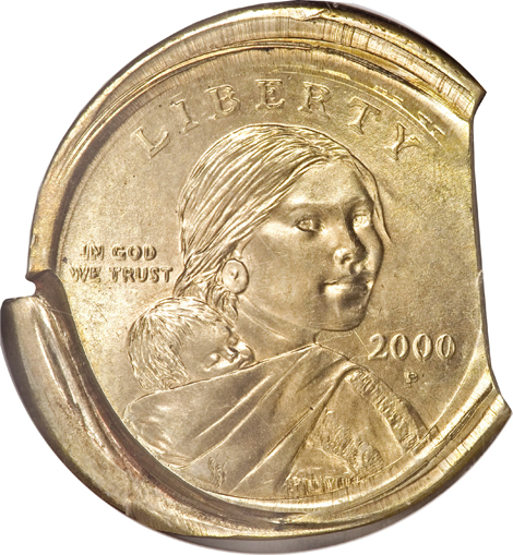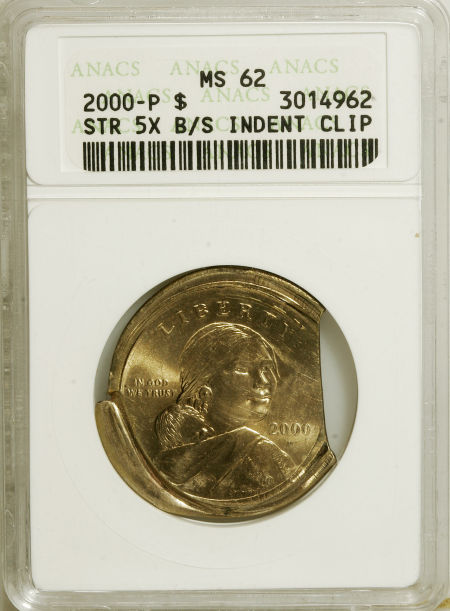 2000-P Sacagawea Dollar--Struck Five Times, Broadstruck, Indent, Clip--MS62 ANACS