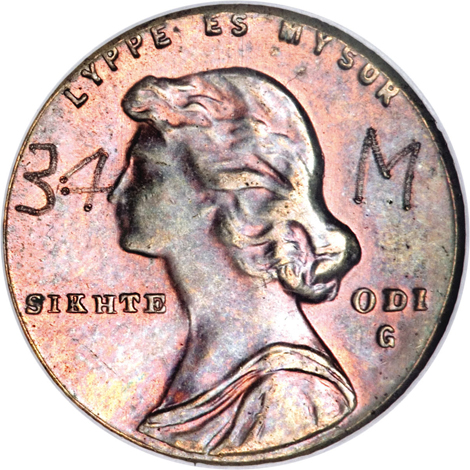 Undated Indian Cent--Struck 25% Off-Center on a 1.13 Gram Planchet--MS63 Brown NGC