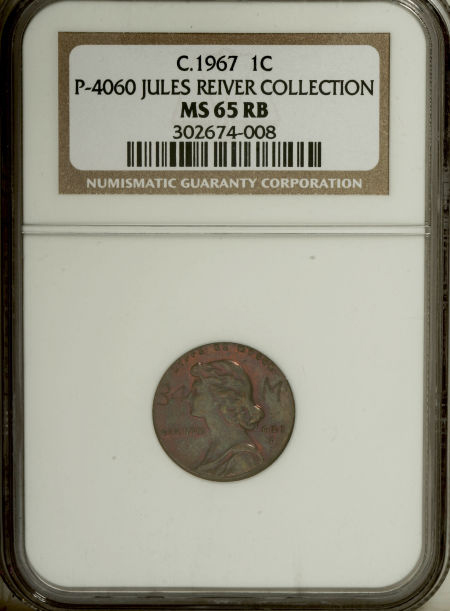 Undated (ca. 1967) General Motors Pattern Cent, Pollock-4060, R.5, MS65 Red and Brown NGC