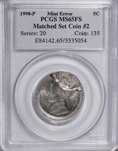 No Date Jefferson Nickel--Matched Set-- MS63 PCGS and a 1998-P MS65FS PCGS