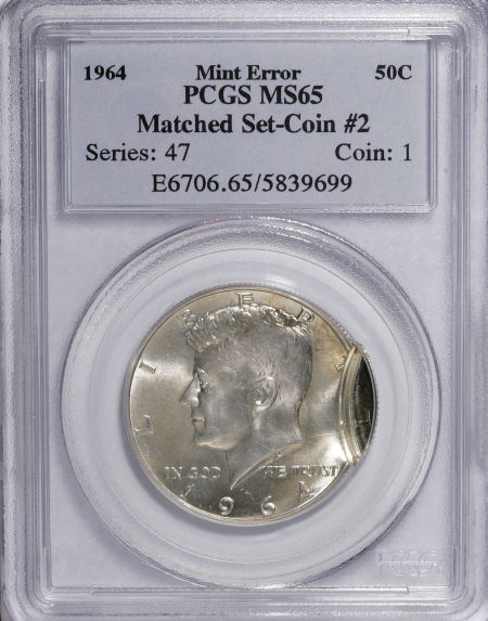 Mated Pair of 1964 Kennedy Half Dollars--MS64 and MS65 PCGS