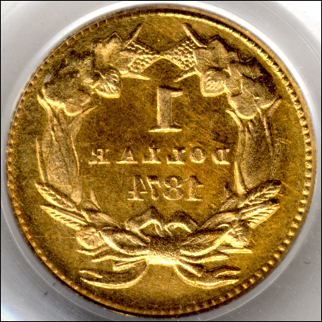 This is the only known full brockage on any U.S. Gold Coin of any denomination. It is a first strike obverse brockage of the reverse. It is in choice mint state condition with proof-like surfaces.