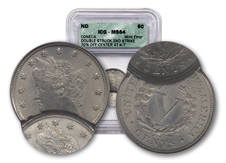 When a planchet is struck by the dies, the normal procedure is for the feeders to eject the struck coin out of the collar and into a chute. If there is a malfunction and the struck coin isn't ejected, it may receive a second or third strike by the dies. A multiple struck coin can happen in many ways and have many combinations of errors.